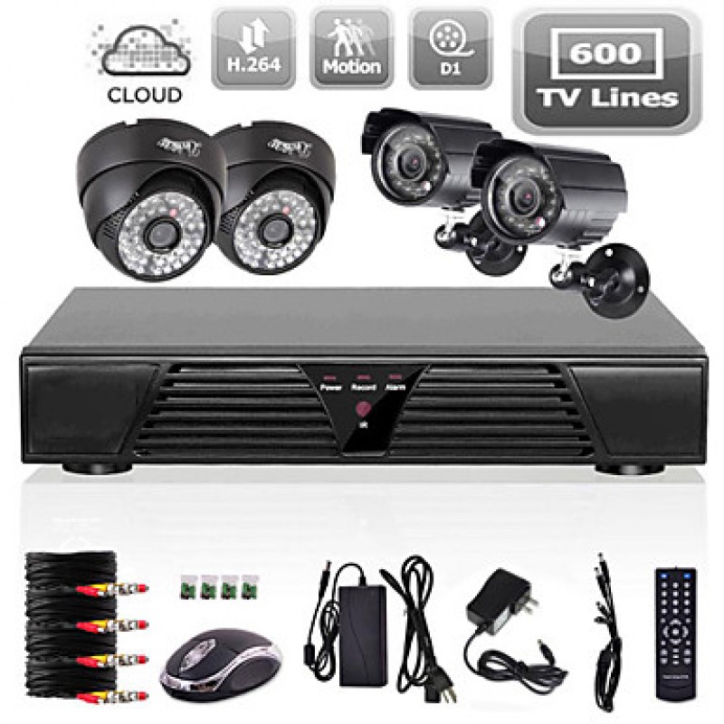 4CH CCTV Full D1 DVR Motion Detection 800TVL Outdoor Indoor Night Vision Camera System