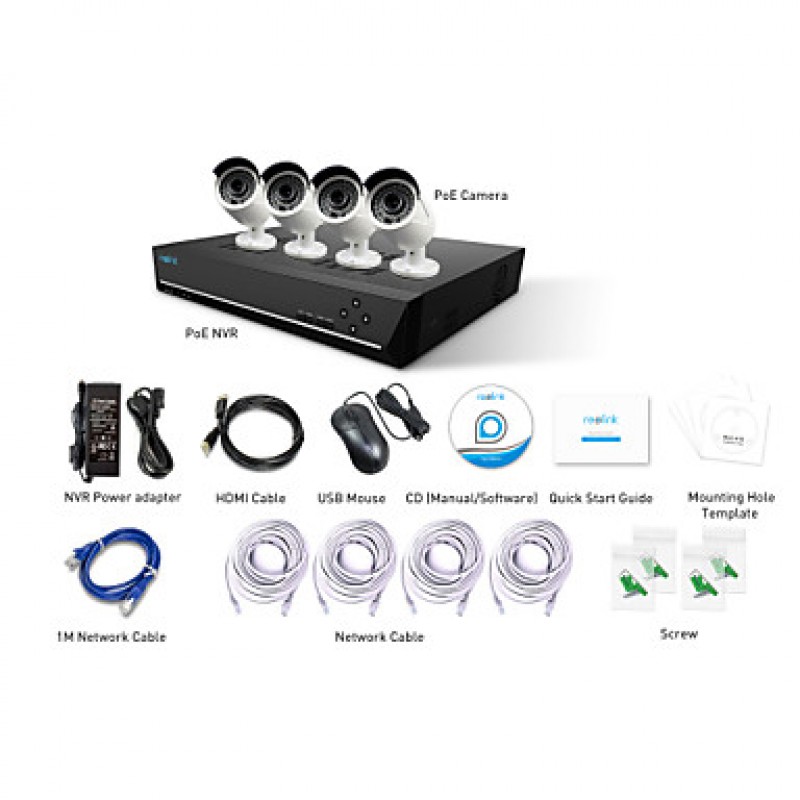 - 1* 8CH 4-Megapixel POE NVR Kit with 4* 4MP Outdoor Waterproof Bullet with 2TB HDD Pre-installed