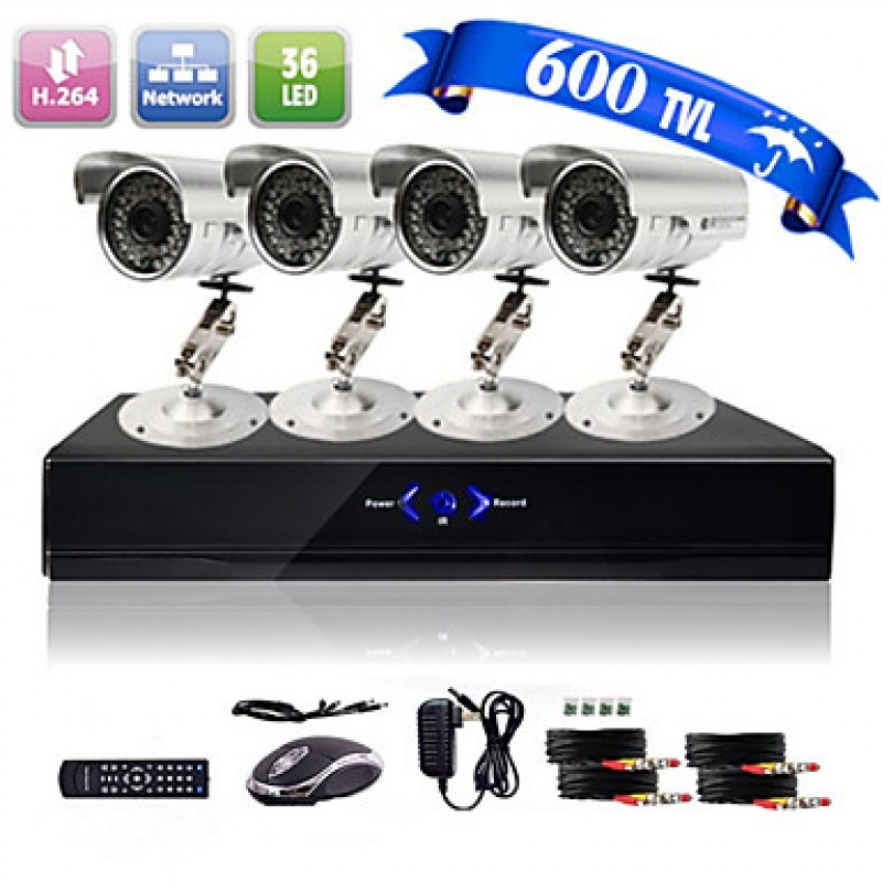 Ultra Low Price 4CH CCTV DVR Kit (4 Outdoor Waterproof 600TVL Color Cameras)