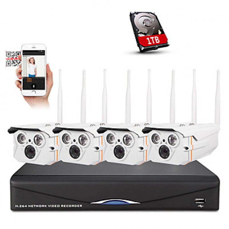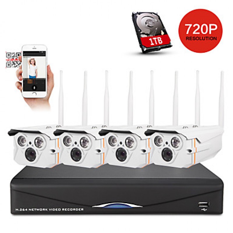 4CH Wireless 1.0MP 720P NVR POE Security IP Camera Kit System Home Network Outdoor Cctv System with 1TB HDD
